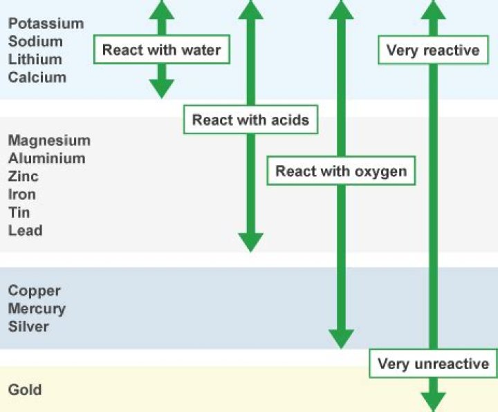 Gold is one of the least reactive elements on the Periodic Table. It doesn’t react with oxygen, so it never rusts or corrodes. Gold is unaffected by air, water, alkalis and all acids except aqua regia (a mixture of hydrochloric acid and nitric acid) which can dissolve gold.
