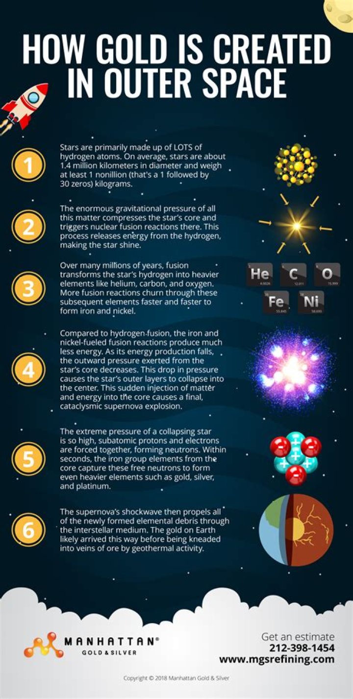 Gold is heavenly, in every sense of the word. Most people don’t know this but, while we mine for gold here on earth, all of the gold that’s deposited in our planet was formed during the explosions of stars and collisions of asteroids, and eventually found its way to earth over time.