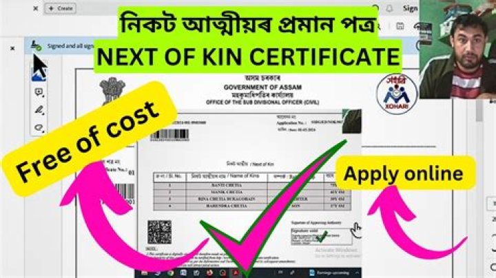 Overview. The application for Next of Kin(s) Certificates are the legal certificate issued district administration. The same may be obtained from respective Deputy Commissioner/ Sub-Divisional Officer(Civil)) along with required documents.