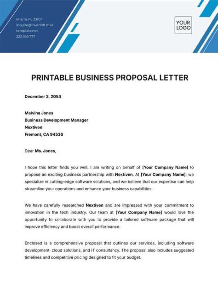 A proposal letter is a professional document that introduces your business ideas to an important recipient who holds a decision-making role. A proposal letter can introduce an idea to try to convince the recipient to read a full document with supporting information, or it can be the proposal itself.