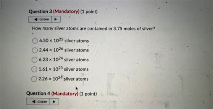 so 3.8 grams = 3.8/107.82 moles. and the number of atoms = 3.8/107.82 x Avogadro’s number =2.16 x 10^22. or 21,600,000,000,000,000,000,000.