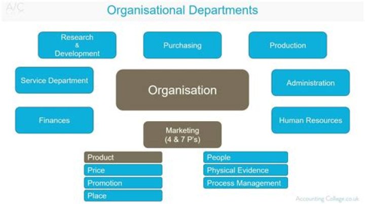 The most common departments are: Production Marketing & Sales Finance Human resource and in some cases, Information Technology departments Production Department The production department is responsible for converting inputs into outputs through the stages of production processes.