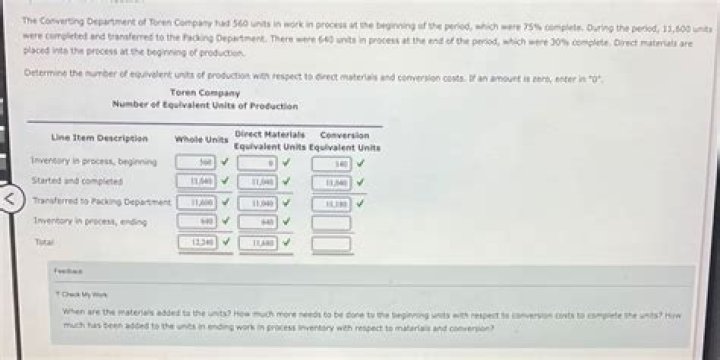 The records further indicate that direct materials, direct labor, and applied factory overhead for Department 2 were $55,000, $65,000, and $80,000, respectively. In addition, work in process at the beginning of the period for Department 1 totaled $75,000, and work in process at the end of the period totaled $60,000.