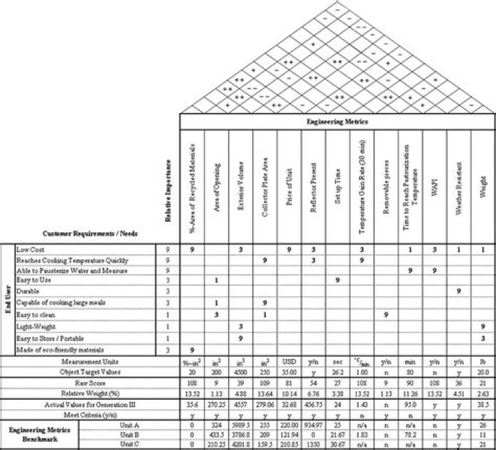 [2002] believed that the principal stages necessary for the construction of the first HOQ matrix includes: 1) Identifying customer requirements (CRs) and their perceptions, 2) Identifying product and engineering design requirements (ECs), 3)Drawing up a relationship matrix, 4)Planning and deploying expected quality (by …