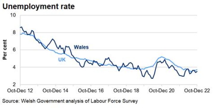 Wales: The employment rate in Wales was 72.2%. This is 0.2 percentage points up on the quarter and 2.2 percentage points down on the year.