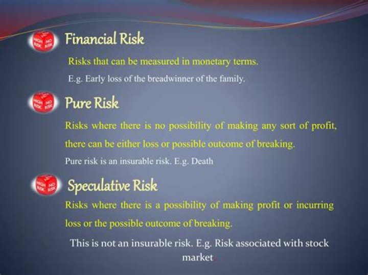 Almost all risks insured by insurance companies are pure risks, which are risks where there is no possibility of profit. Additionally, since insurable losses can only be compensated by the payment of money, only risks involving financial loss are insurable.