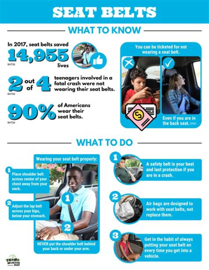 In fact, if you don’t wear your seat belt, you could be thrown into an opening airbag and be injured or even killed2. Get in the habit of always putting your safety belt on every time you get into a vehicle. No matter where you are sitting or the distance you are going. Ask your passengers to buckle up also.
