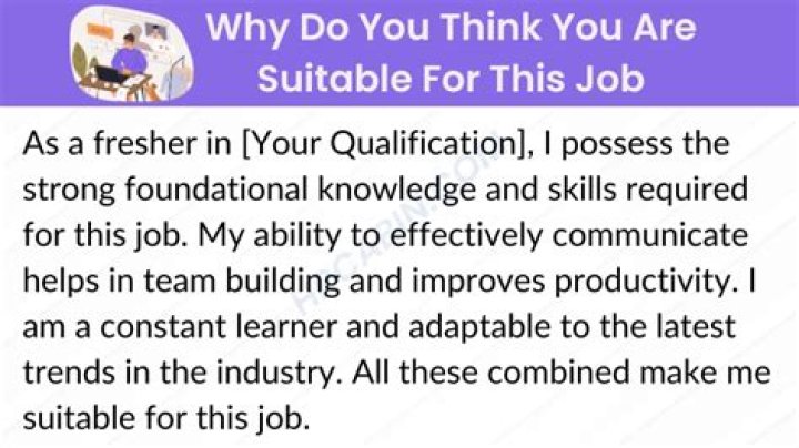 Sample answers 1: I believe that my knowledge, attribute, skills, working experience, and inspiration that the position required makes me suitable candidate for this post. I can confidently carry out the task mentioned in your job description. My attitude and temperament best suits the nature of the job.
